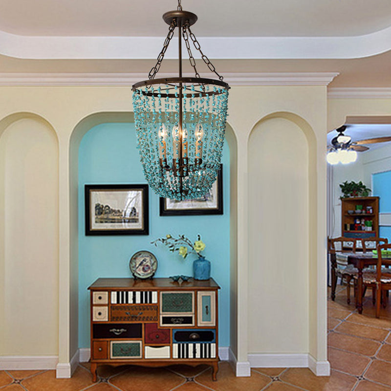 Metal Dome Chandelier Lamp Nordic 4 Bulbs Blue Pendant Lighting Fixture for Living Room