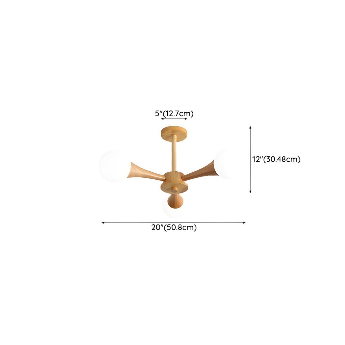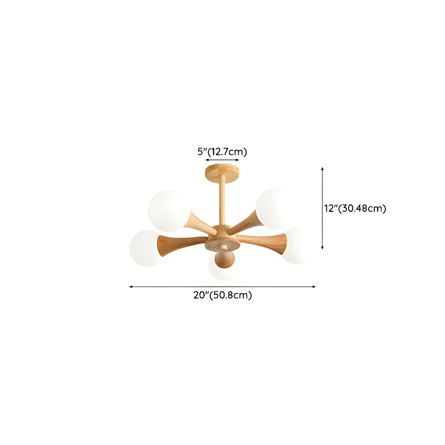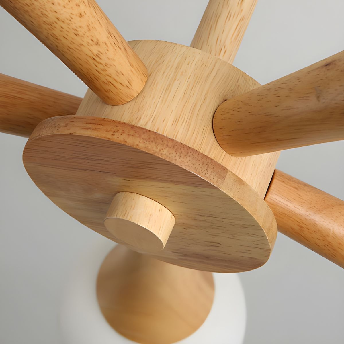 Modern Natural Wood Globe Semi-Flush Mount Ceiling Light with White Glass Shade