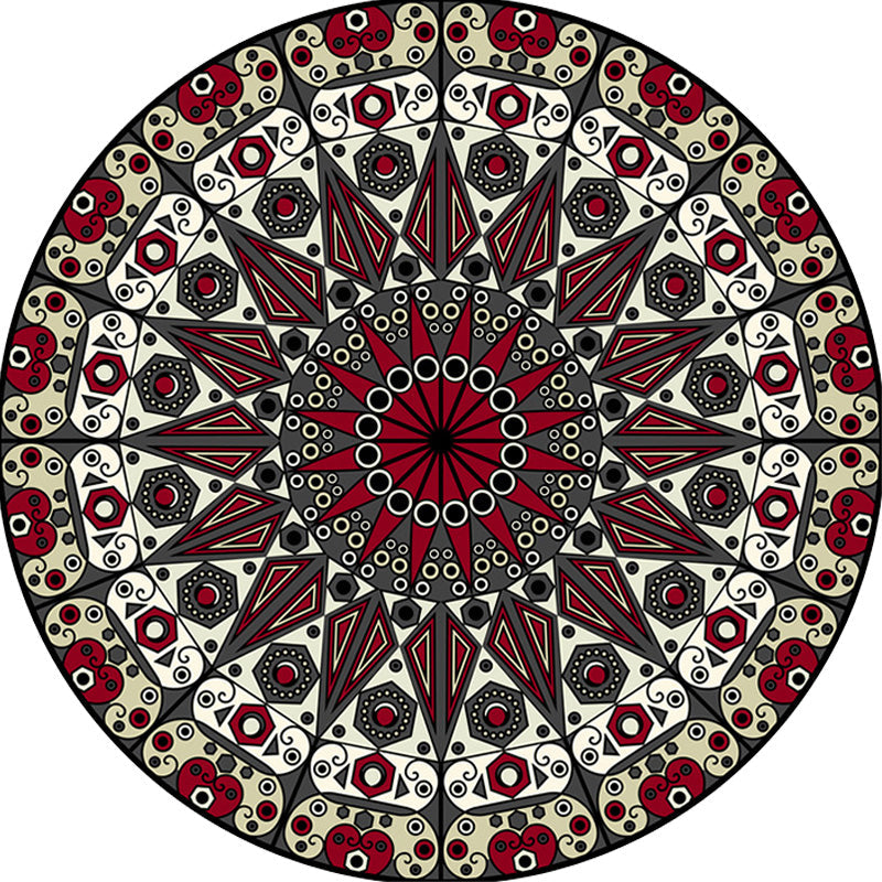 Moroccan Circle Pattern Rug with Flower Multicolor Polyester Rug Washable Pet Friendly Non-Slip Area Rug for Living Room