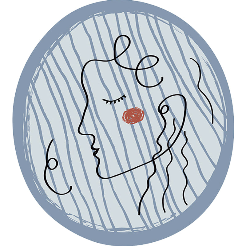 Novelty Living Room Irregular Rug in Blue Abstract Painting Print Rug Polyester Non-Slip Backing Area Rug