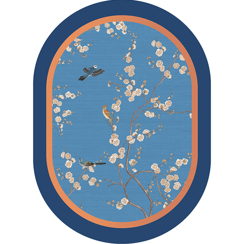 Oriental Bedroom Rug Multi-Color Floral Printed Area Carpet Polyster Non-Slip Backing Easy Care Indoor Rug