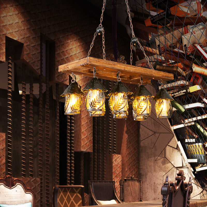 Rectangle White Fabric/Clear Glass Island Pendant Light Vintage 8 Lights Restaurant Chandelier Lamp in Black Clear Clearhalo 'Ceiling Lights' 'Island Lights' Lighting' 337644