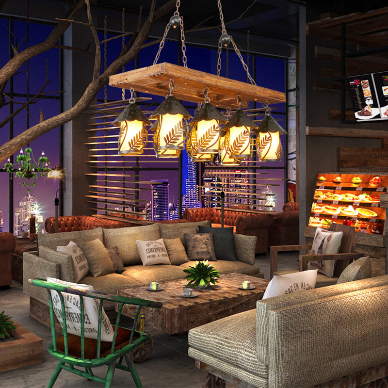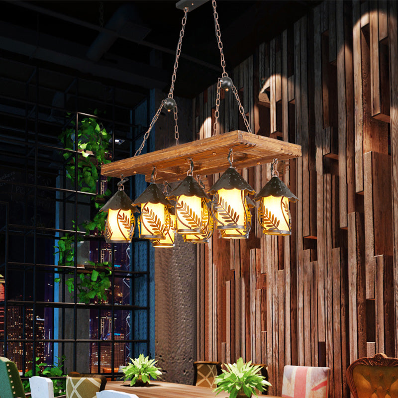 Rectangle White Fabric/Clear Glass Island Pendant Light Vintage 8 Lights Restaurant Chandelier Lamp in Black