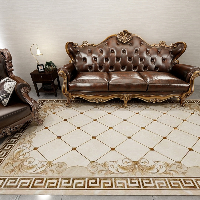 Scandinavian Living Room Rug Multicolored Plaid Printed Area Carpet Polyster Non-Slip Pet Friendly Area Rug