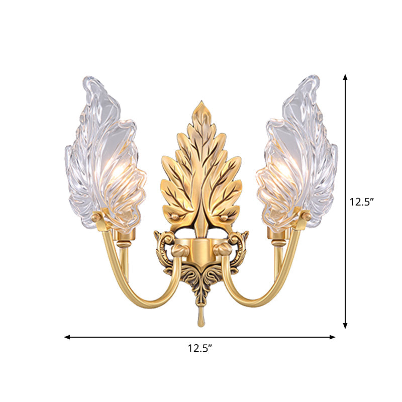 Traditional Palm Leaf Sconce Lamp 1/2 Lights Clear Glass Wall Lighting Idea with Arched Arm in Brass Clearhalo 'Wall Lamps & Sconces' 'Wall Lights' Lighting' 1431245