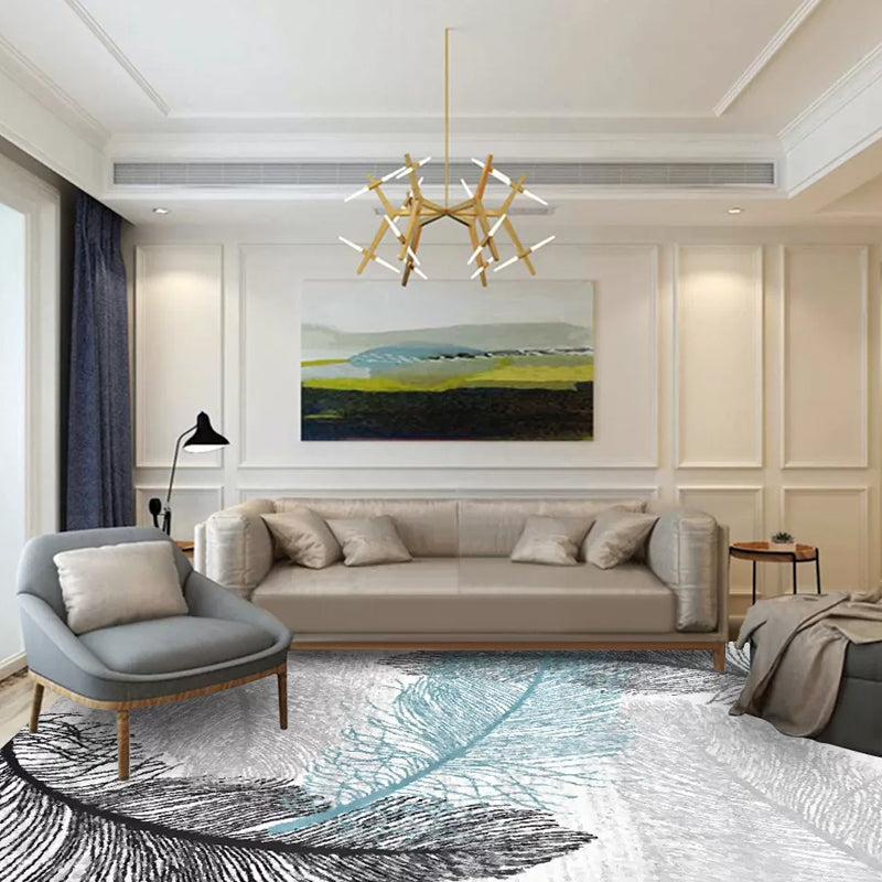 Tropical Living Room Rug in Grey Botanical Print Rug Polyester Non-Slip Machine Washable Area Rug