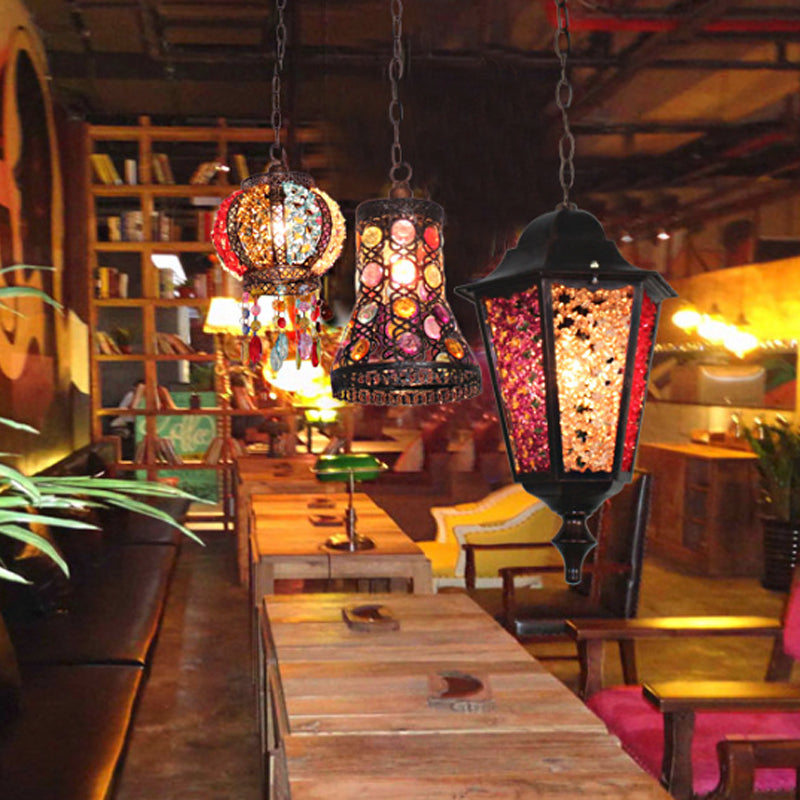 Turkish Flared/Lantern/Tapered Hanging Light 1-Light Stained Glass Pendulum Light in Black for Dining Room Clearhalo 'Ceiling Lights' 'Pendant Lights' 'Pendants' Lighting' 1972121