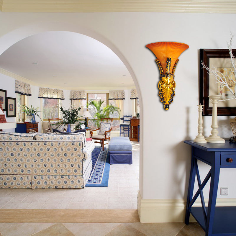 Yellow Glass Bell Wall Mount Lamp Traditional Style 1 Light Corridor Sconce Lighting in Bronze/Gold Clearhalo 'Wall Lamps & Sconces' 'Wall Lights' Lighting' 281745