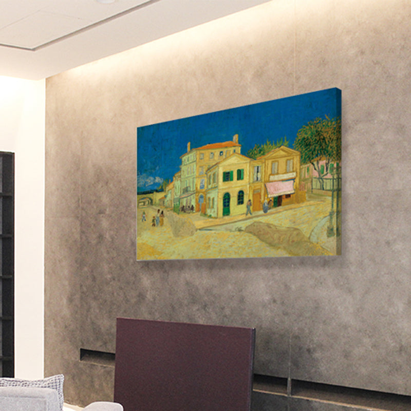 Yellow Houses Oil Painting Art Print Textured Farmhouse Living Room Wall Decoration